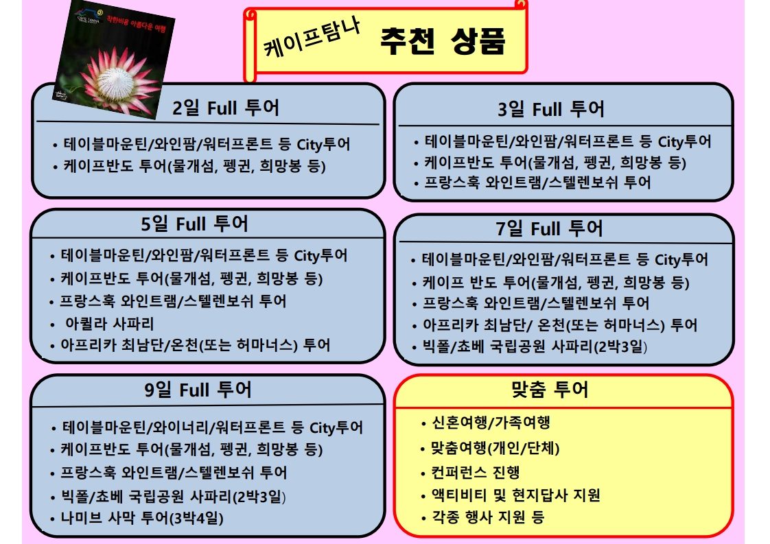 ★ 맞춤투어 ★ "가장 케이프탐나적인 것이" "가장 세계적인 것" ●일정에 맞게~ ●비용에 맞게~ ●알뜰하게~ ●즐겁고 행복한 여행을 함께합니다