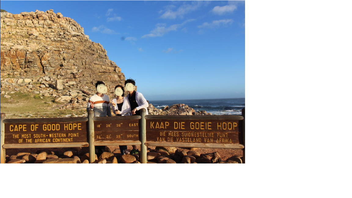 | 작성자 | esfggd | 안녕하세요 11월 말쯤에 신혼여행으로 갔었던 커플입니다. 다들 신혼여행으로 왜 아프리카를 가냐하며 의아해 했었는데 탁월한 선택이였어요. 빅폴에서 부터 케이프타운까지 일주일이란 시간이 너무 짧게만 느껴졌던 시간이였습니다. 사장님과 사모님. (음식솜씨가 최고입니다) 그리고 저희 가이드를 해주셨던 성환씨. 성환씨가 너무 친절하시고 최선을 다해주시는 모습에 정말 감동 받았습니다. 처음엔 가이드 없이 저희끼리만 움직이려고 했었는데 성환씨 없었으면 어떻게 여행했을까 싶네요 가는곳마다 설명도 자세히 해주시고 사진도 이쁘게 찍어주신 덕분에 신혼여행 앨범도 하나 만들었답니다. 남는게 사진이라고. 요즘에도 매일매일 사진 보면서 일주일의 꿈같던 시간들을 추억하고 있습니다 처음부터 끝까지 행복한 모습으로 저희를 맞이해주셨던 모습들이 생생하네요 아마 케이프탐나에 묵었던 모든 사람들이 저희와 같은 생각일 것 같습니다. 이것저것 생소하고 두려웠지만 세심하게 배려해주셔서 정말 감사드려요 앞으로 사업 더욱더 번창하시길 바라며 성환씨랑 같이찍었던 사진 한장 올립니다 혹시나 싶어 얼굴은 가렸어요 다음에 기회가 되면 또 뵙겠습니다^^