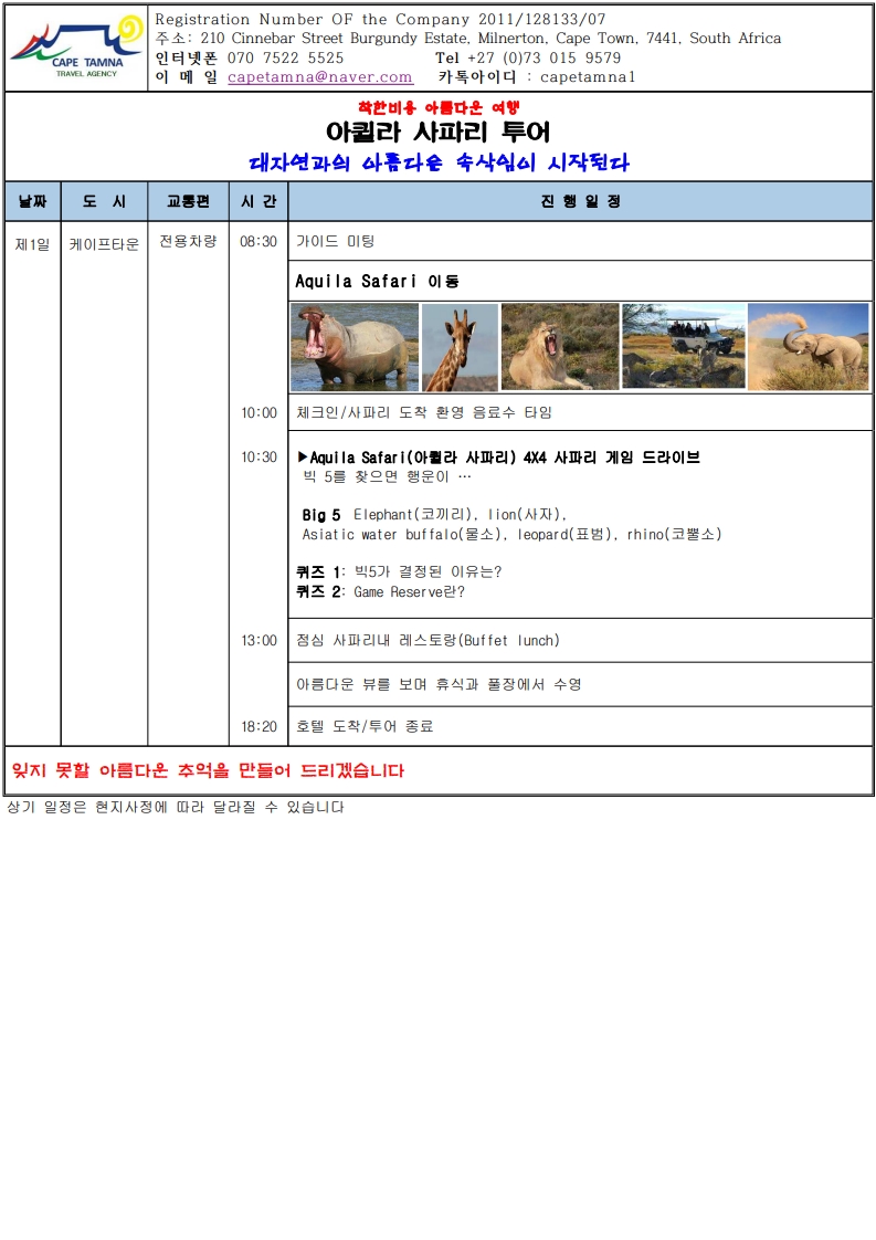 케이프타운 "아퀼라" 사파리 투어